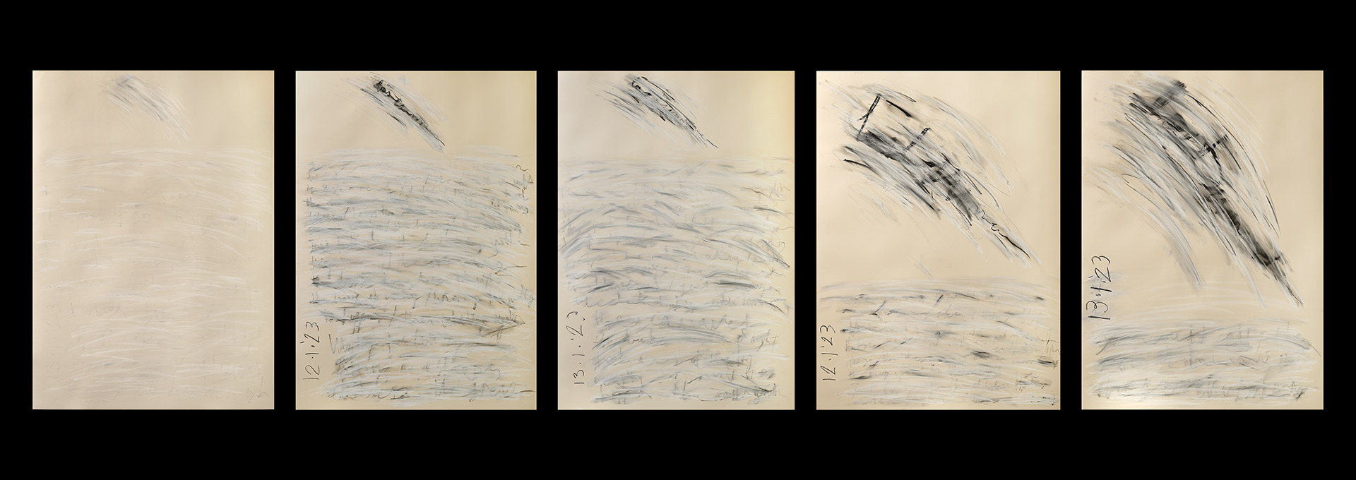 Sergio Calderón Lost Summer, 2023 Set of 5 Artworks I. II. III. IV. V. Pencil, charcoal on paper 84.1 x 59.4 cm |